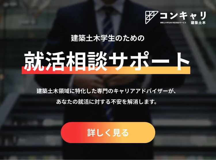 また、コンキャリでは、毎年100人以上の就活生をサポートしているキャリアコンサルタントが、建築土木学生の方の就職活動をサポートしています。