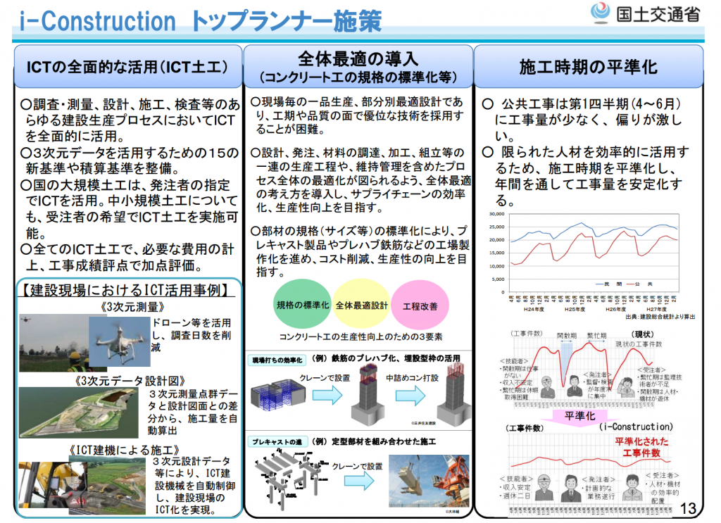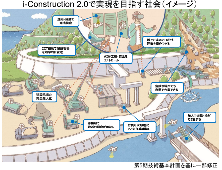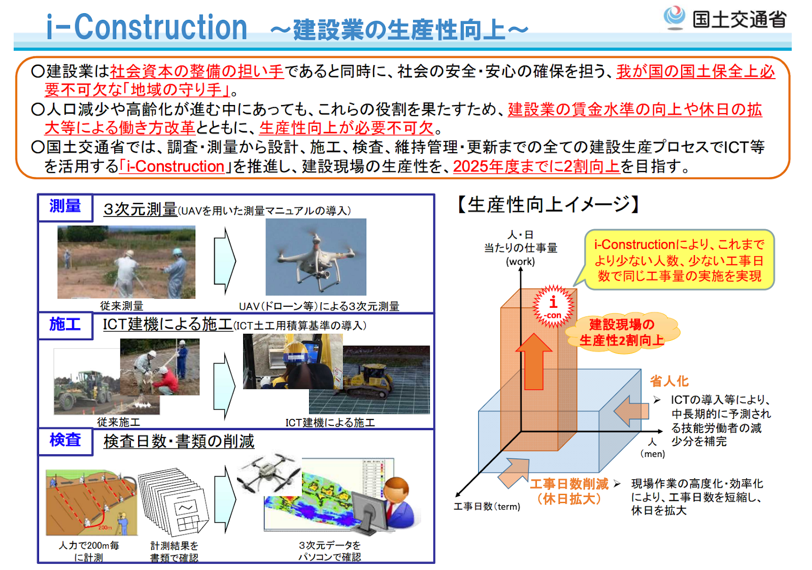 もともと「i-Construction」は2016年にスタートし、建設現場の効率化を目的にICT建機やドローン測量などを導入してきました。