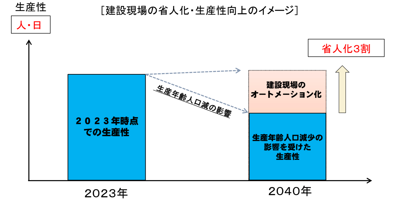 建設業界の未来を考えるうえで、「どれだけ人手を減らせるか」ではなく、「限られた人材でどう持続可能な現場をつくるか」が重要になっています。よって、省人化は、持続可能な建設業の実現に向けた重要な政策的アプローチの一つです。
