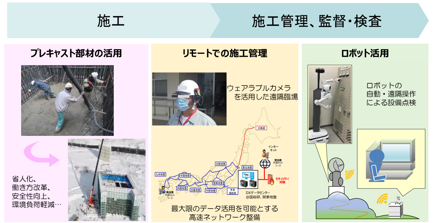 これら3つの柱が連携することで、建設現場の「ムリ・ムダ・ムラ」をなくし、生産性向上・品質改善・労働環境の改善といった効果が期待されています。
