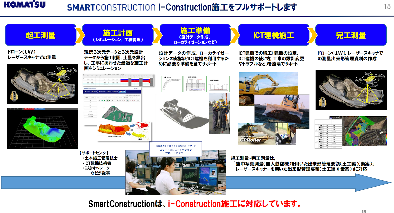 さらに、建設機械メーカーのコマツが展開している「スマートコンストラクション」のように、実際の現場でデジタル技術を取り入れるための民間企業による取り組みも進んでいます。